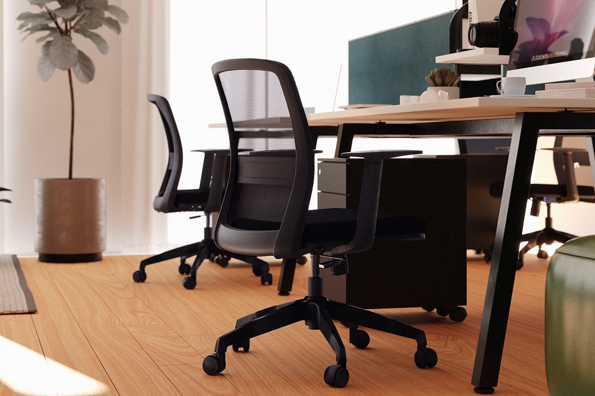 Hello! I am Robin Swivel Mesh Chair in Black – a sophisticated seating solution meticulously designed for both style and functionality. Tailored for your comfort, I feature a simple tilt mechanism, and fixed PP arms. My high-density seat foam and lumbar support ensure a supportive and ergonomic seating experience, making you suitable for 8 hours a day. Additionally, my chair is height adjustable, allowing you to customize it according to your preferences.
